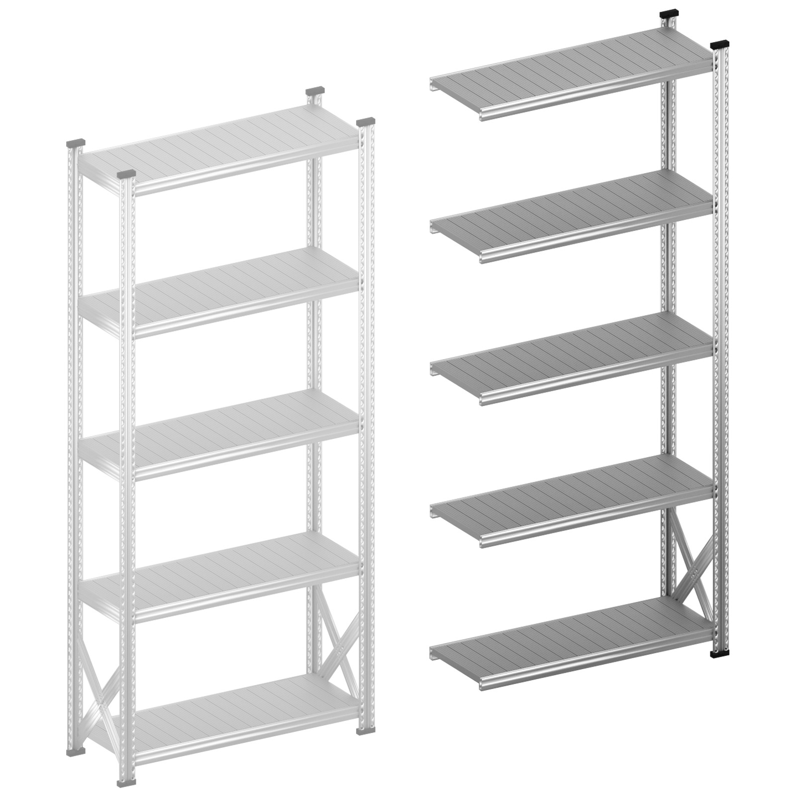 - Geschikt voor lichte tot halfzware opslag – Legborden dragen tot 235 kg per stuk, staanders tot 1500 kg.